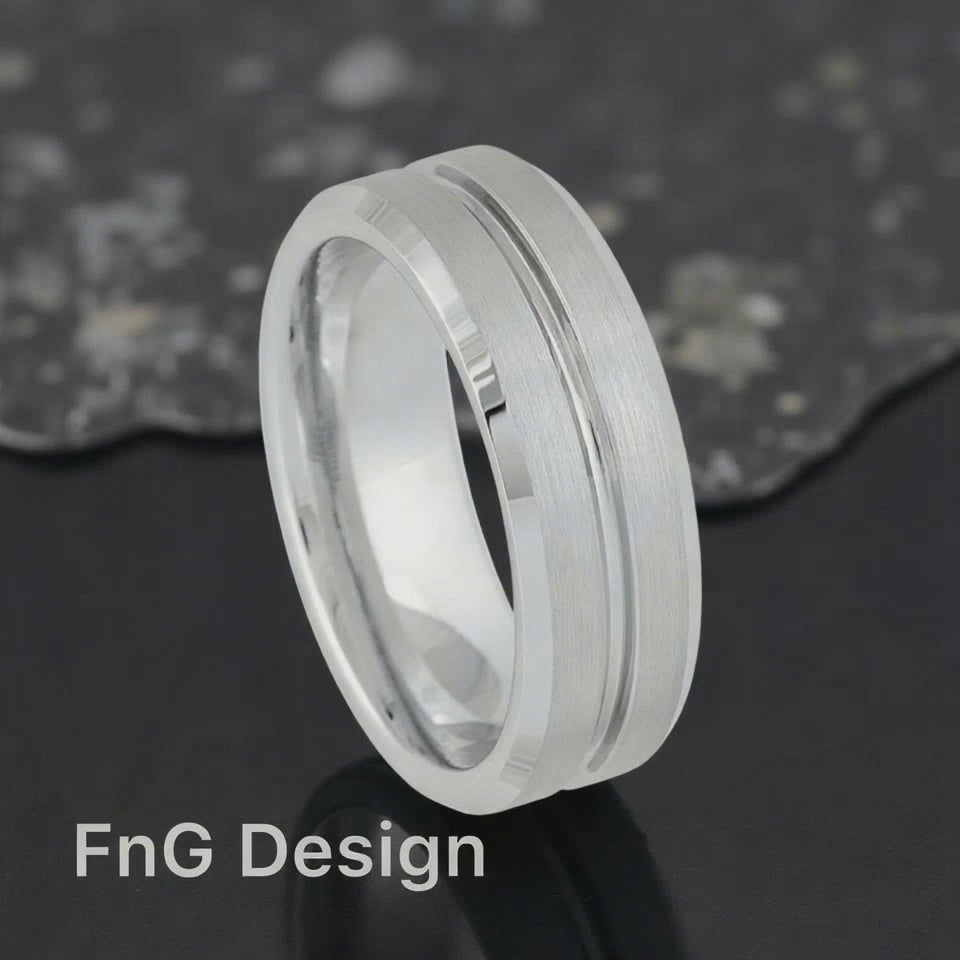 White Tungsten Carbide 8mm ion Plating hi-Polished Bevel Flat & Grooved Brushed Finish Ring