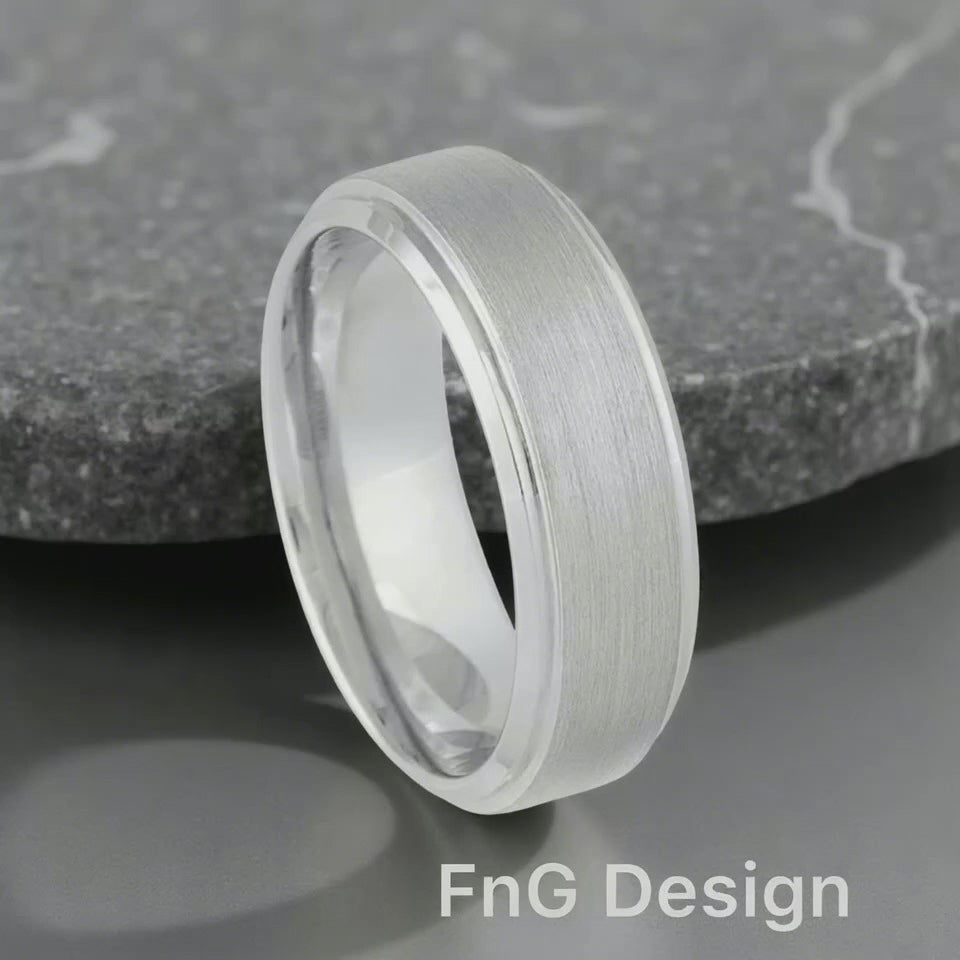 White Tungsten Carbide 8mm ion Plating Flat hi-Polished Center Brushed Stepped Edge Finish Ring