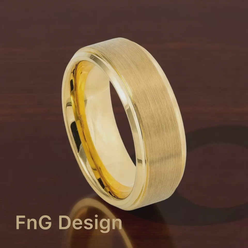 Gold Tungsten Carbide 8mm ion Plating Flat Brushed hi-Polished Bevel Ring