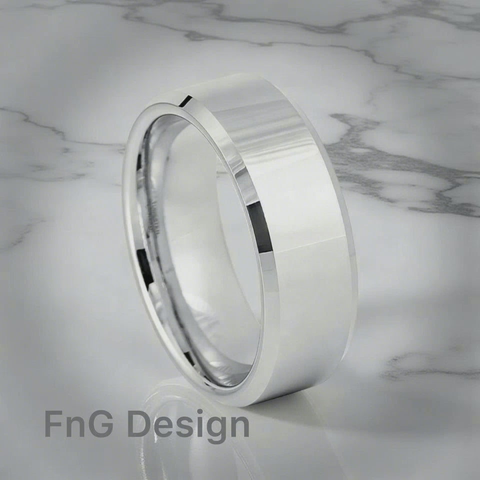 White Tungsten Carbide 8mm ion Plating Flat Beveled hi-Polished Finish Ring
