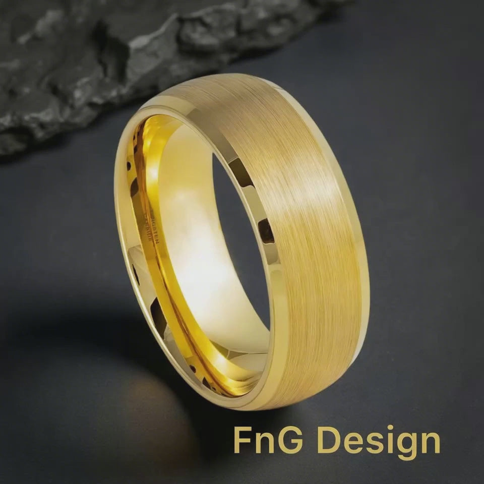 Gold Tungsten Carbide 8mm ion Plating Domed Brushed hi-Polished Bevel Ring
