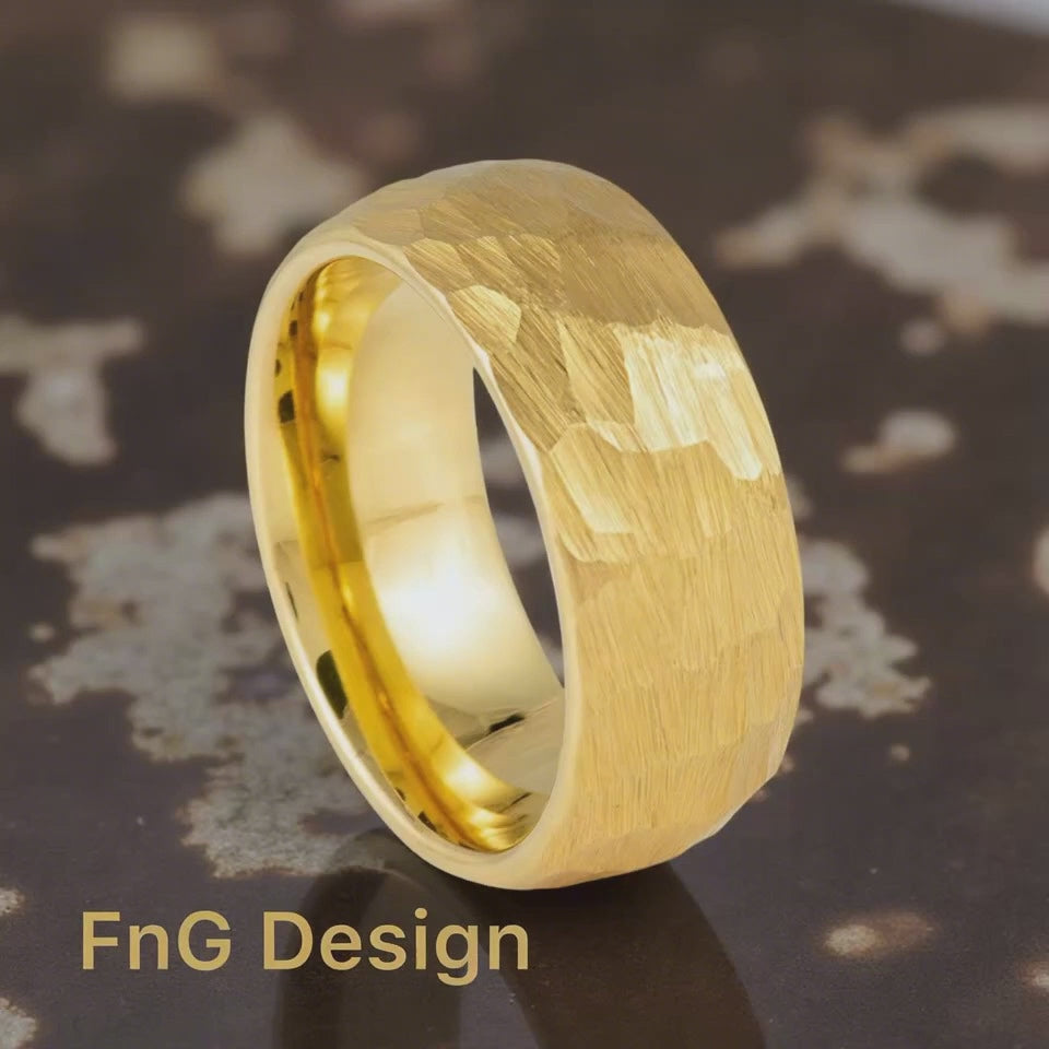 Gold Tungsten Carbide 8mm ion Plating Domed Hammered Finished Ring