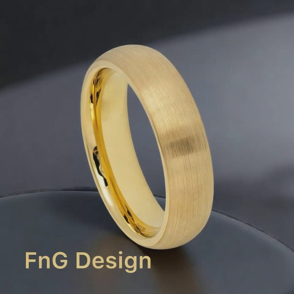 Gold Tungsten Carbide 6mm ion Plating Domed Brushed Ring