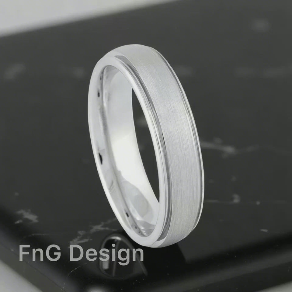 White Tungsten Carbide 6mm ion Plating hi-Polished Bevel Flat & Grooved Brushed Finish Ring