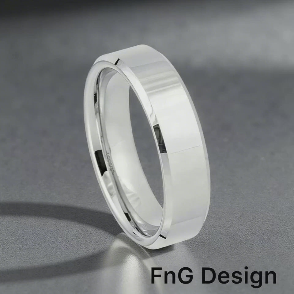 White Tungsten Carbide 6mm ion Plating Flat Beveled hi-Polished Finish Ring