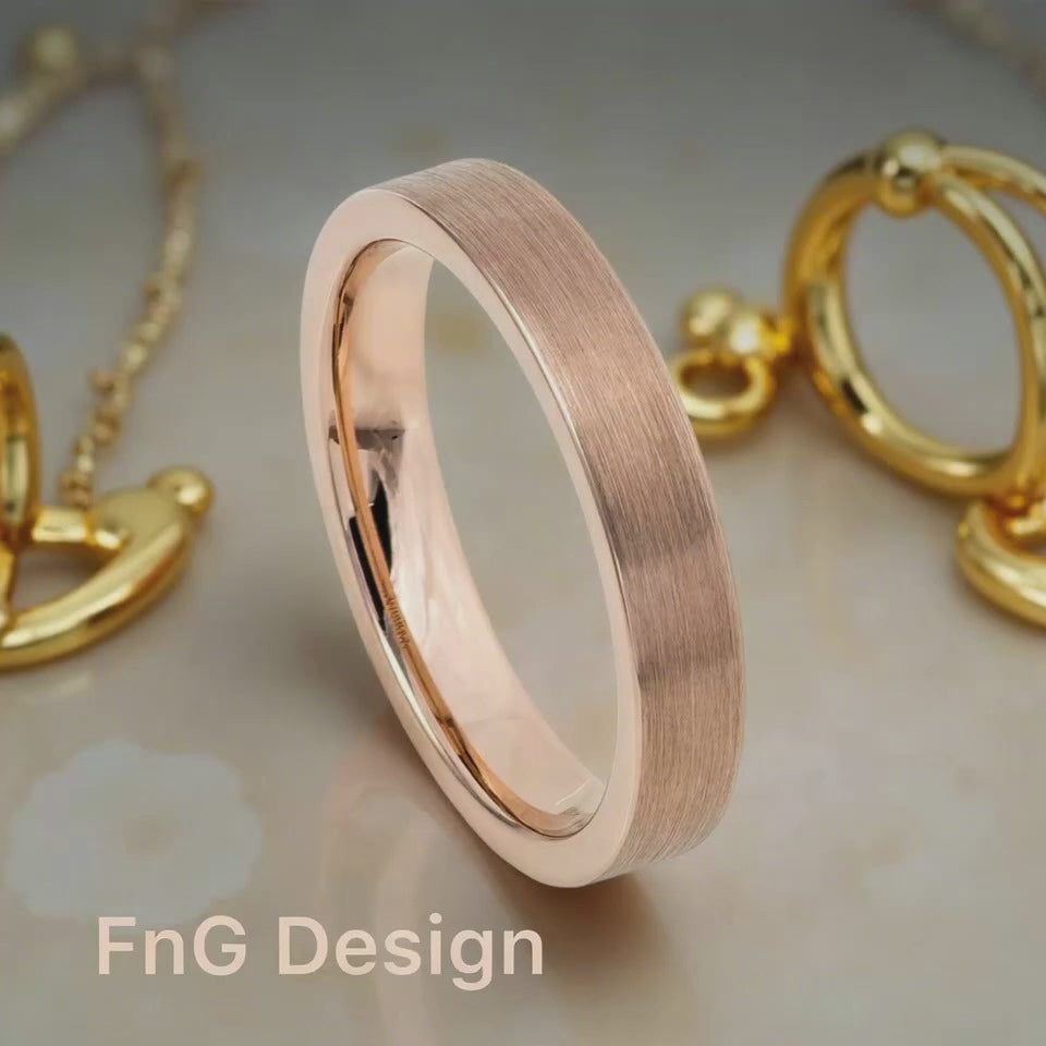 Rose Gold Tungsten Carbide 4mm ion Plating Flat Brushed Pipe Cut Ring