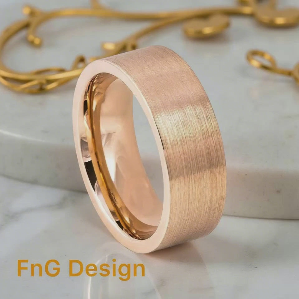 Rose Gold Tungsten Carbide 8mm ion Plating Flat Brushed Pipe Cut Ring