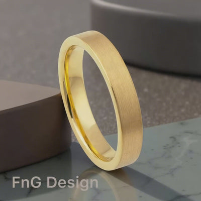 Gold Tungsten Carbide 4mm ion Plating Flat Brushed Ring