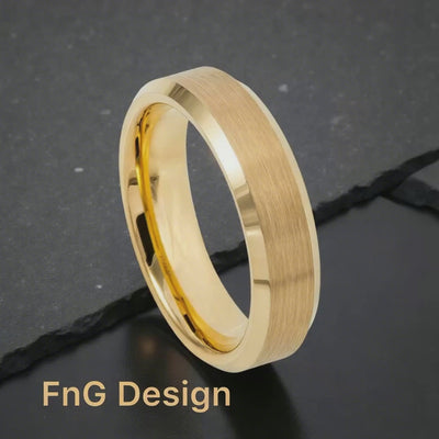 Gold Tungsten Carbide 6mm ion Plating Flat Brushed hi-Polished Bevel Ring