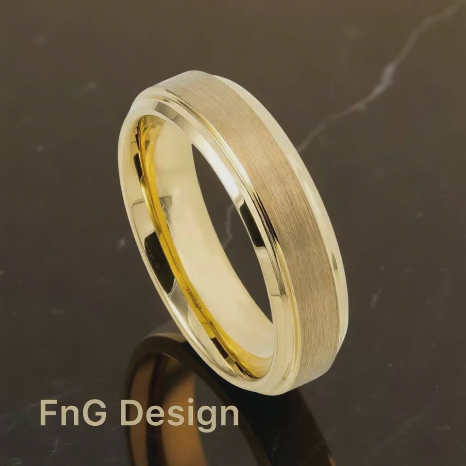 Gold Tungsten Carbide 6mm ion Plating Flat Brushed Stepped Edge Ring