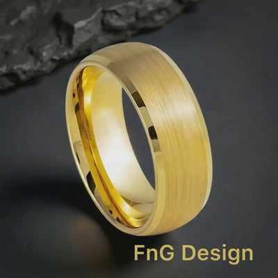 Gold Tungsten Carbide 8mm ion Plating Flat Brushed hi-Polished Bevel Ring