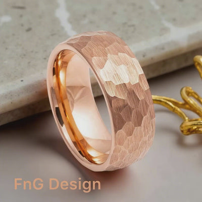Rose Gold Tungsten Carbide 8mm ion Plating Dome Hammered Brushed Pipe-Cut Ring