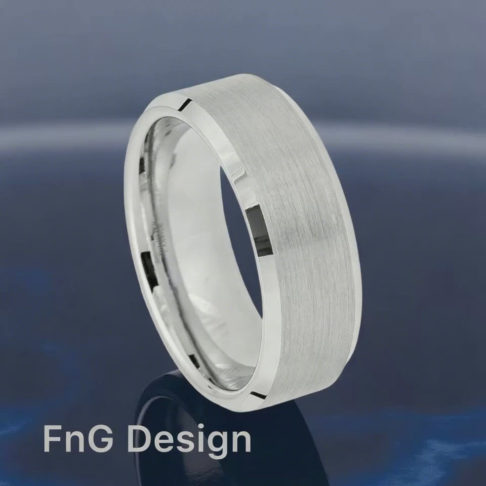 White Tungsten Carbide 8mm ion-Plating Beveled hi-Polished Brushed Finish Ring