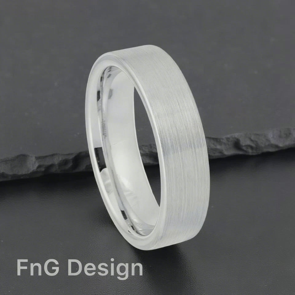 White Tungsten Carbide 6mm ion Plating Flat Brushed Finish Ring