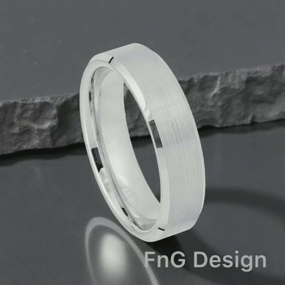 White Tungsten Carbide 6mm ion-Plating Beveled hi-Polished Brushed Finish Ring