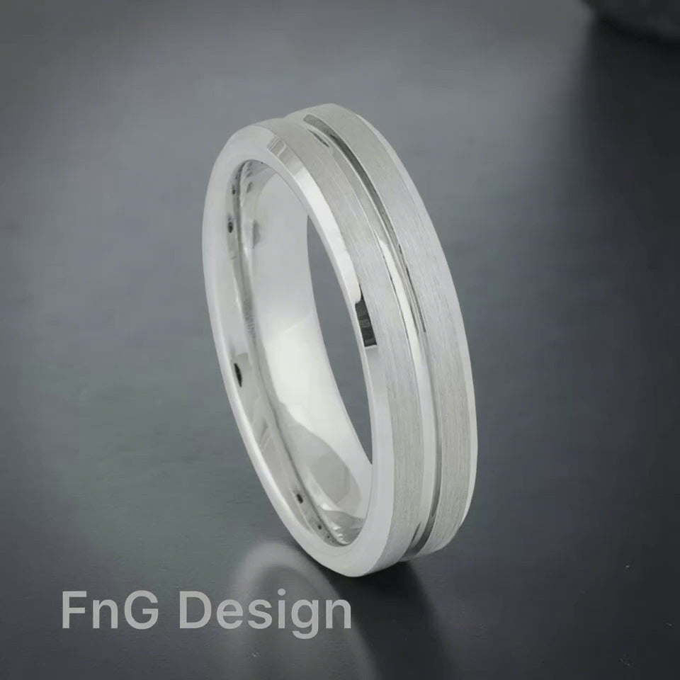 White Tungsten Carbide 6mm ion Plating hi-Polished Bevel Flat & Grove Brushed Finish Ring